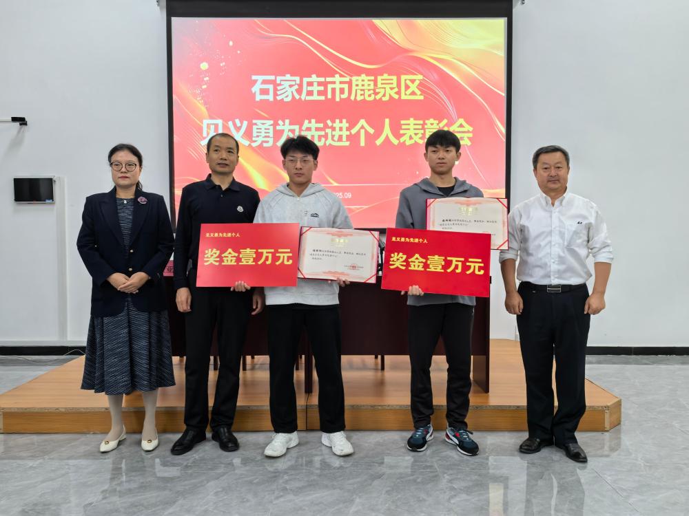 会上宣读了对河北传媒学院艺术体育学院学生赖炜桢、程祥阳见义勇为表彰通报,授予两位同学“鹿泉区见义勇为先进个人”荣誉称号,并颁发荣誉证书和奖金,表彰他们在危急时刻挺身而出、勇救落水者的担当行为。