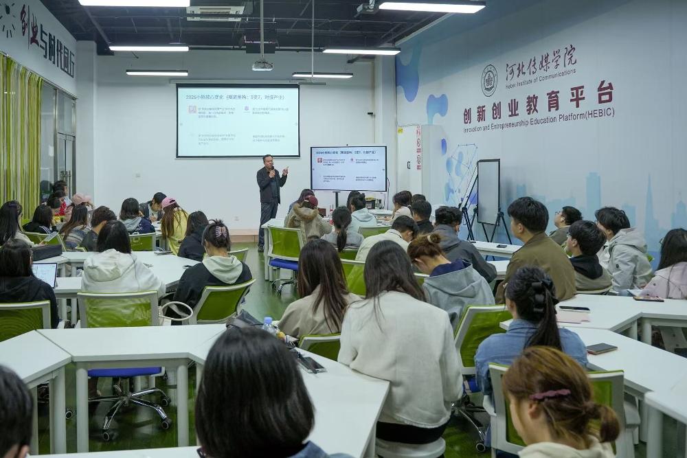 为帮助参赛学生准确把握赛事方向、优化项目质量、提升整体竞争力,4月2日,校团委联合就业创业指导中心举办2026年“挑战杯”大学生创业计划竞赛专家指导讲座暨河北传媒学院第三十五期创客沙龙。本次活动特邀省赛、国赛评委专家库成员、河北众汉科技有限公司总经理孙月峰老师主讲,围绕赛事核心要点、评审动态及备赛策略进行系统深入的分享。各学院指导教师及参赛学生代表参加了讲座。